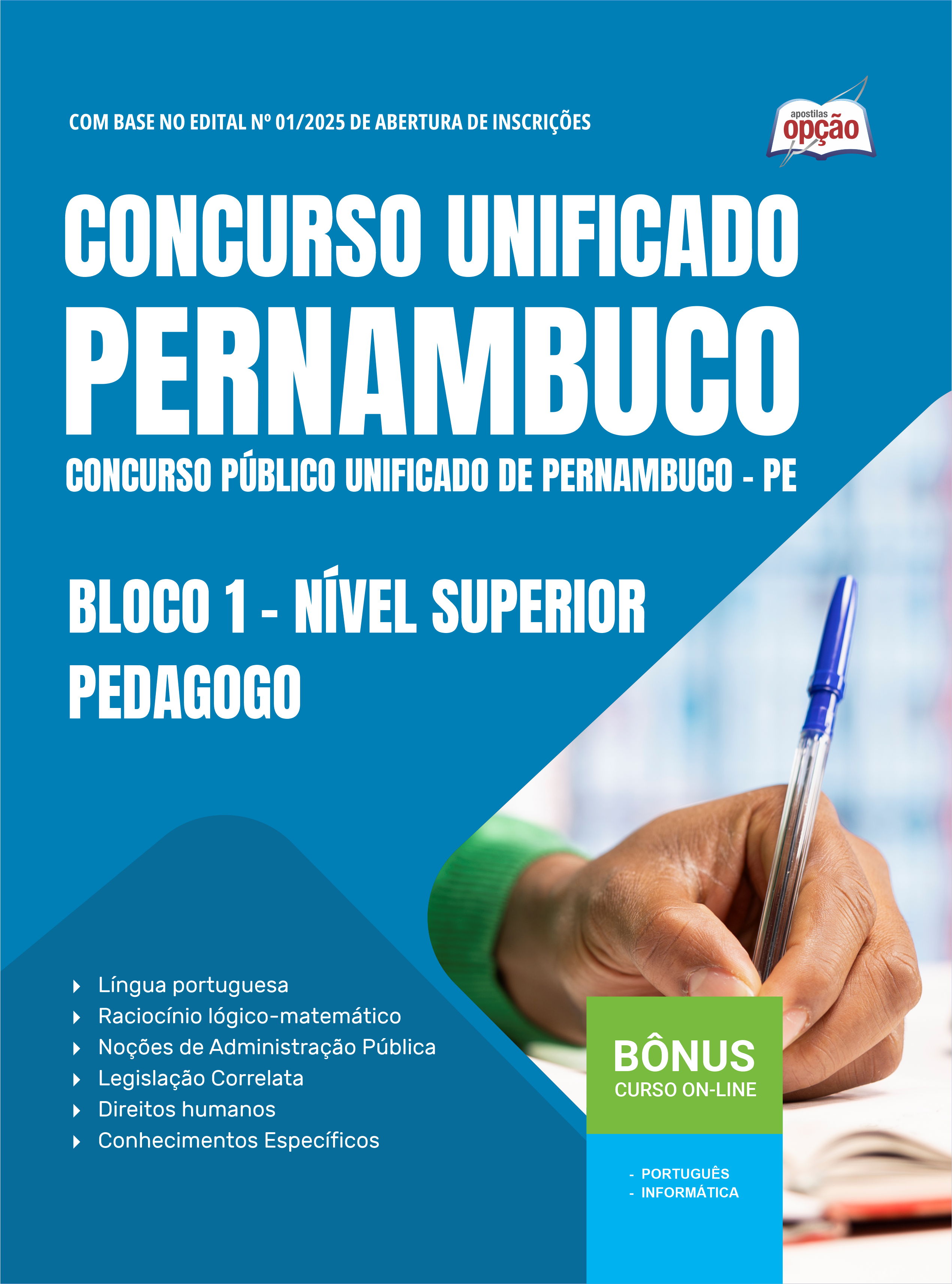 A Apostila Concurso Público Unificado do Estado do Pernambuco 2025 - Bloco 1 - Nível Superior - Pedagogo foi organizada para proporcionar um melhor rendimento na sua preparação, abordando cada conteúdo de forma objetiva e direcionada. Estude para o Concurso da Concurso Público Unificado do Estado do Pernambuco 2025 com um material de acordo com o Edital oficial para o cargo de Bloco 1 - Nível Superior - Pedagogo.