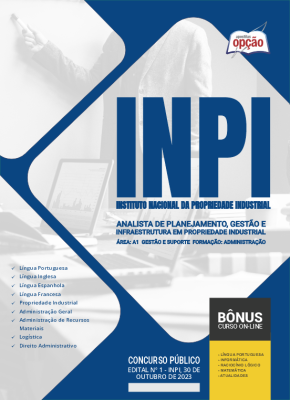 A Apostila INPI - Instituto Nacional da Propriedade Industrial 2023 - Analista de Planejamento, Gestão e Infraestrutura em Propriedade Industrial - Área: A1 - Gestão e Suporte - Formação: Administração foi elaborada de acordo com o edital 1/2023, por professores especializados em cada matéria e com larga experiência em concursos.