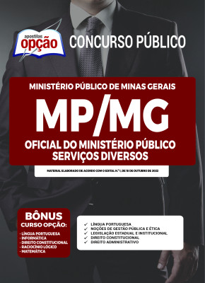A Apostila MP-MG - Oficial do Ministério Público - Serviços Diversos foi elaborada de acordo com o edital 1/2022, por professores especializados em cada matéria e com larga experiência em concursos.