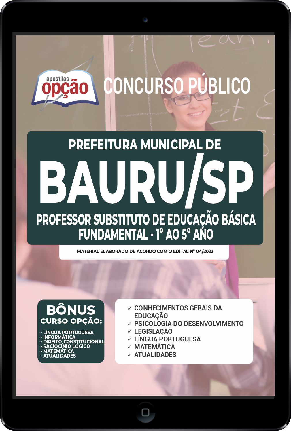 A Apostila Prefeitura de Bauru - SP em PDF - Professor Substituto de Educação Básica (Fundamental - 1º ao 5º Ano) 2022 foi elaborada de acordo com o Edital 04/2022, por professores especializados em cada matéria e com larga experiência em concursos.