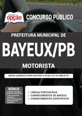 A Apostila Prefeitura de Bayeux - PB - Motorista foi elaborada de acordo com o edital 1, por professores especializados em cada matéria e com larga experiência em concursos.