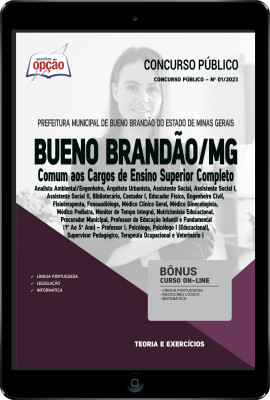A Apostila Digital Prefeitura de Bueno Brandão - MG 2023 - Comum aos Cargos de Ensino Superior Completo foi elaborada de acordo com o edital 01/2023, por professores especializados em cada matéria e com larga experiência em concursos.