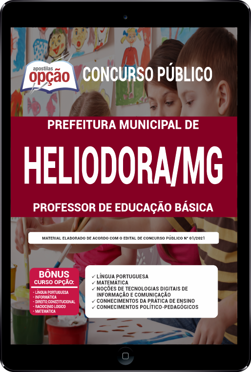 A Apostila Prefeitura de Heliodora - MG em PDF - Professor de Educação Básica 2022 foi elaborada de acordo com o Edital 1, por professores especializados em cada matéria e com larga experiência em concursos.