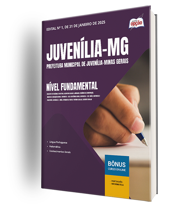 A Apostila Prefeitura Municipal de Juvenília - MG 2025 - Nível Fundamental foi elaborada de acordo com o edital 1/2025, por professores especializados em cada matéria e com larga experiência em concursos.