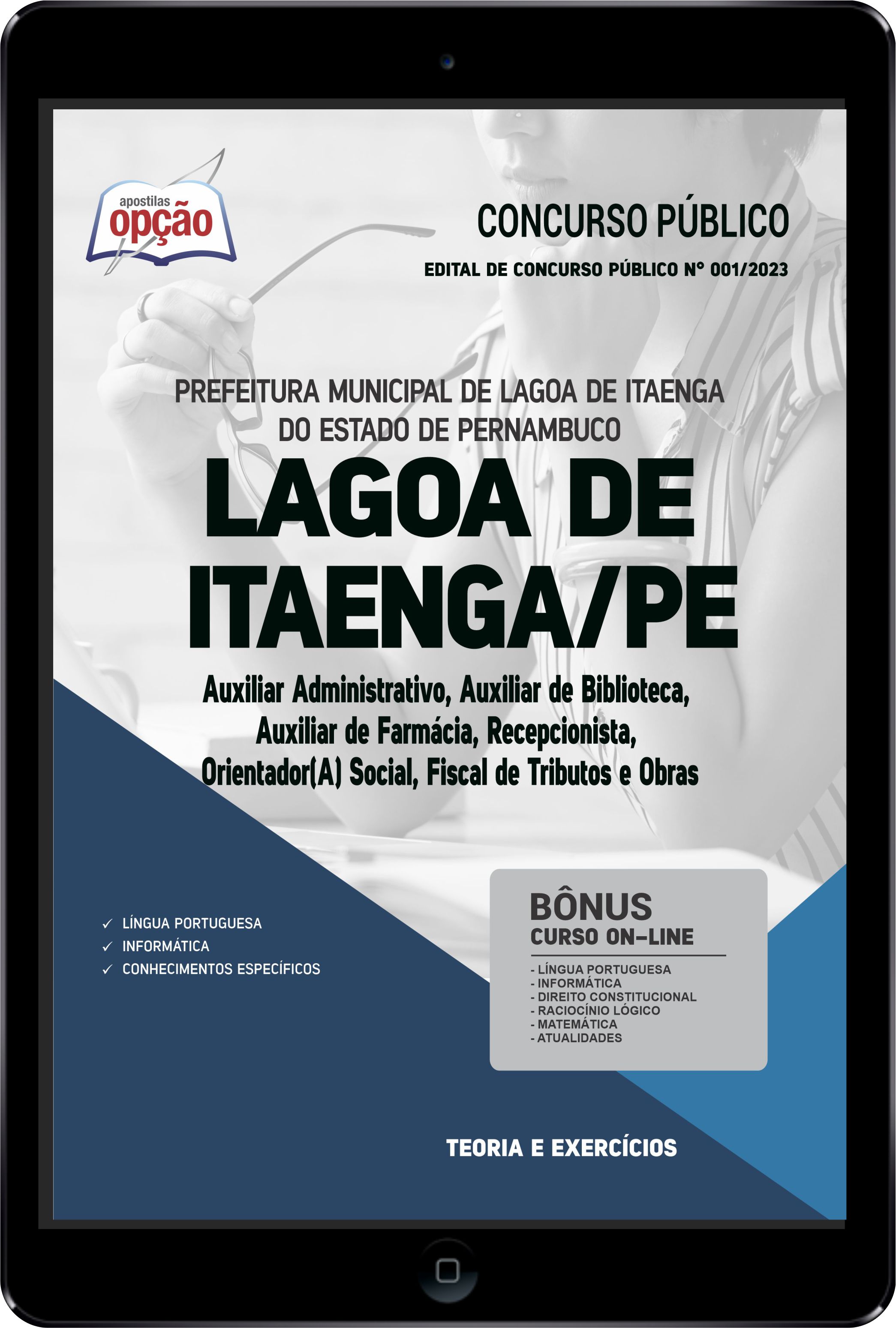 A Apostila Digital Prefeitura de Lagoa de Itaenga - PE 2023 - Auxiliar Administrativo, Auxiliar de Biblioteca, Auxiliar de Farmácia, Recepcionista, Orientador(a) Social, Fiscal de Tributos e Obras foi elaborada de acordo com o edital 001/2023, por professores especializados em cada matéria e com larga experiência em concursos.