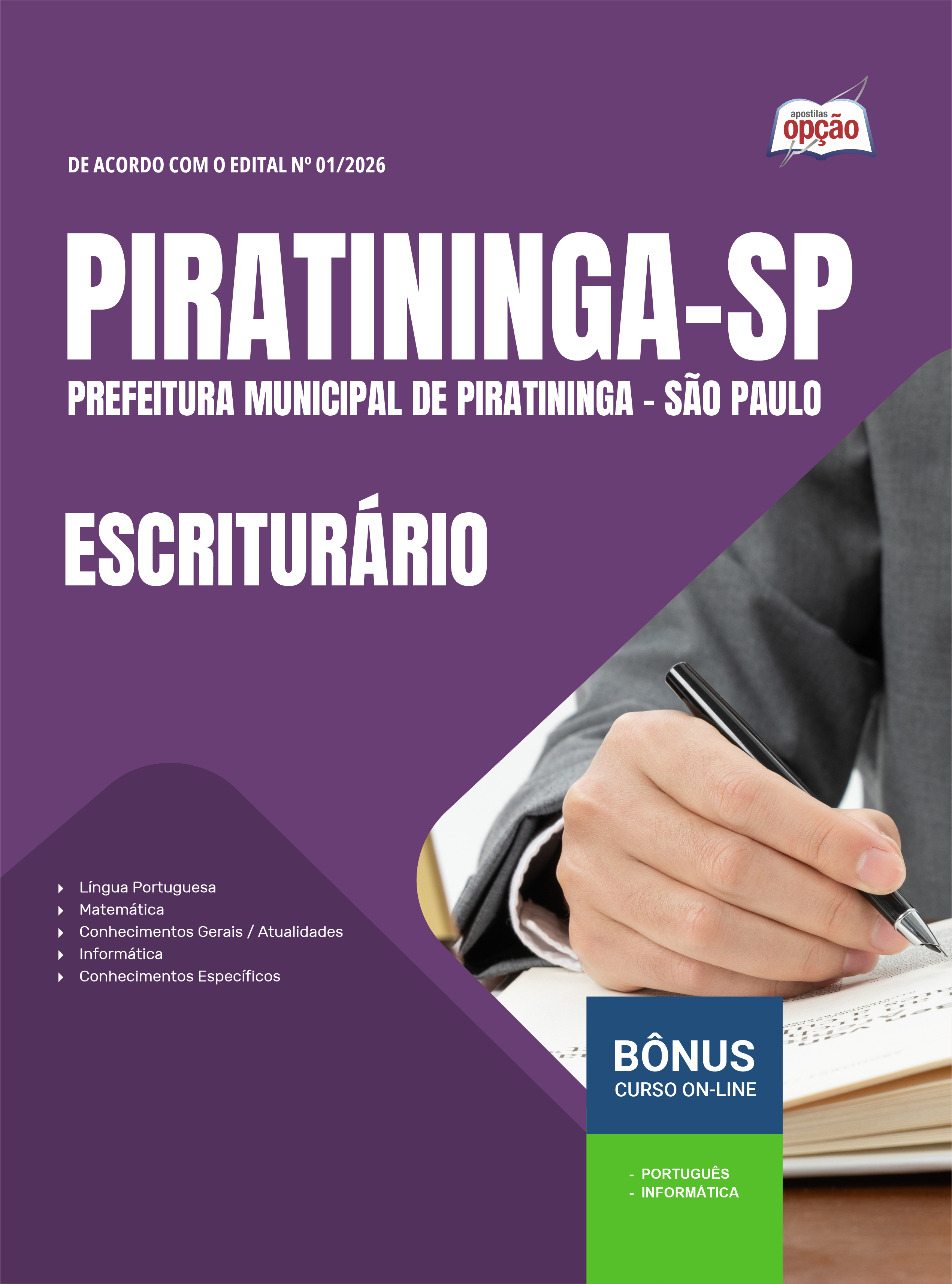 Apostila Prefeitura de Piratininga - SP 2026 - Escriturário