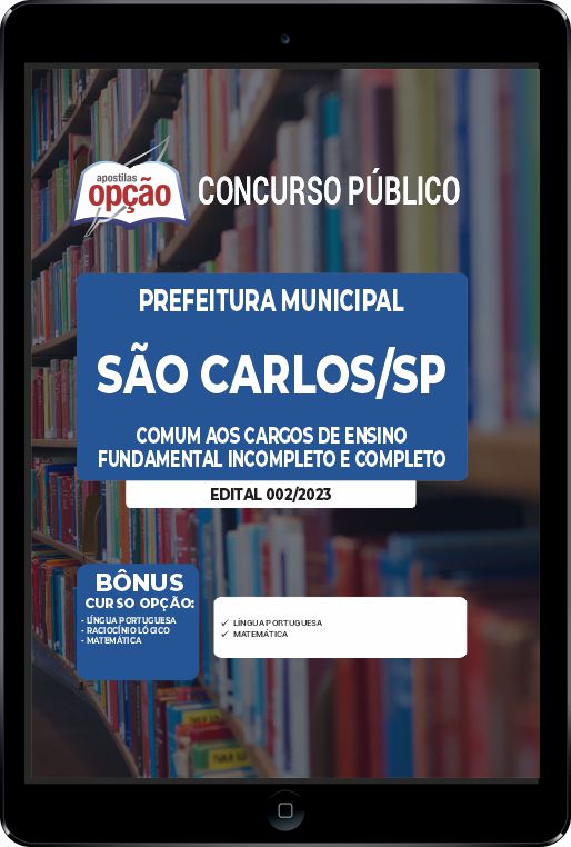 - Apostila Digital Prefeitura de São Carlos - SP em PDF - Comum aos Cargos de Ensino Fundamental Incompleto e Completo;