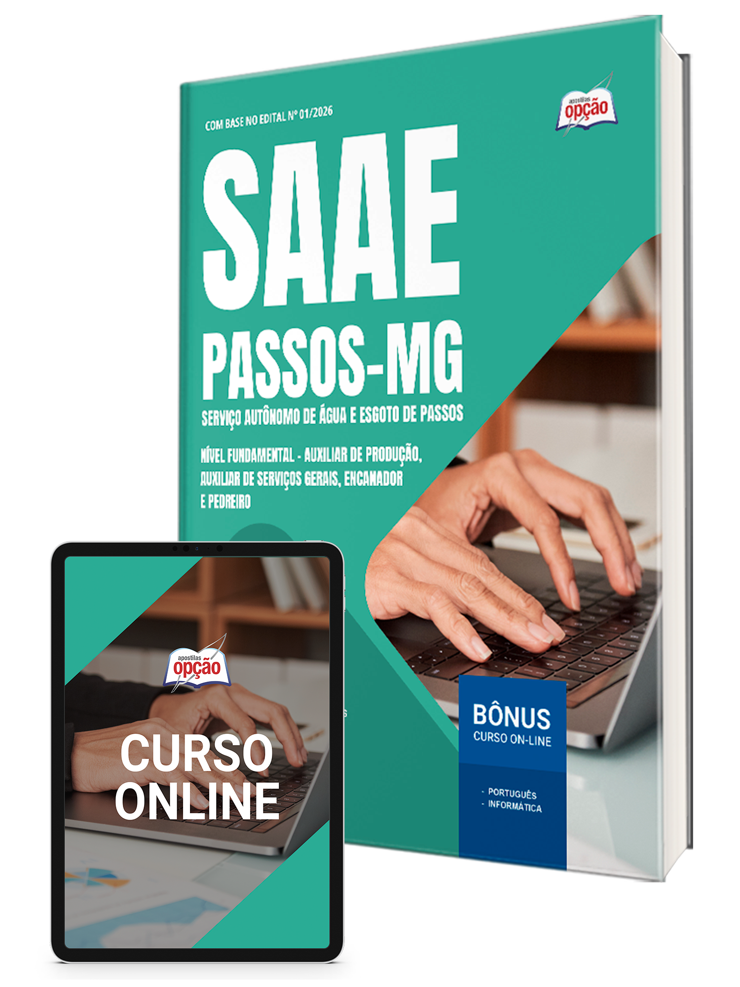 Apostila SAAE Passos-MG 2026 - Nível Fundamental - Auxiliar de Produção, Auxiliar de Serviços Gerais, Encanador e Pedreiro