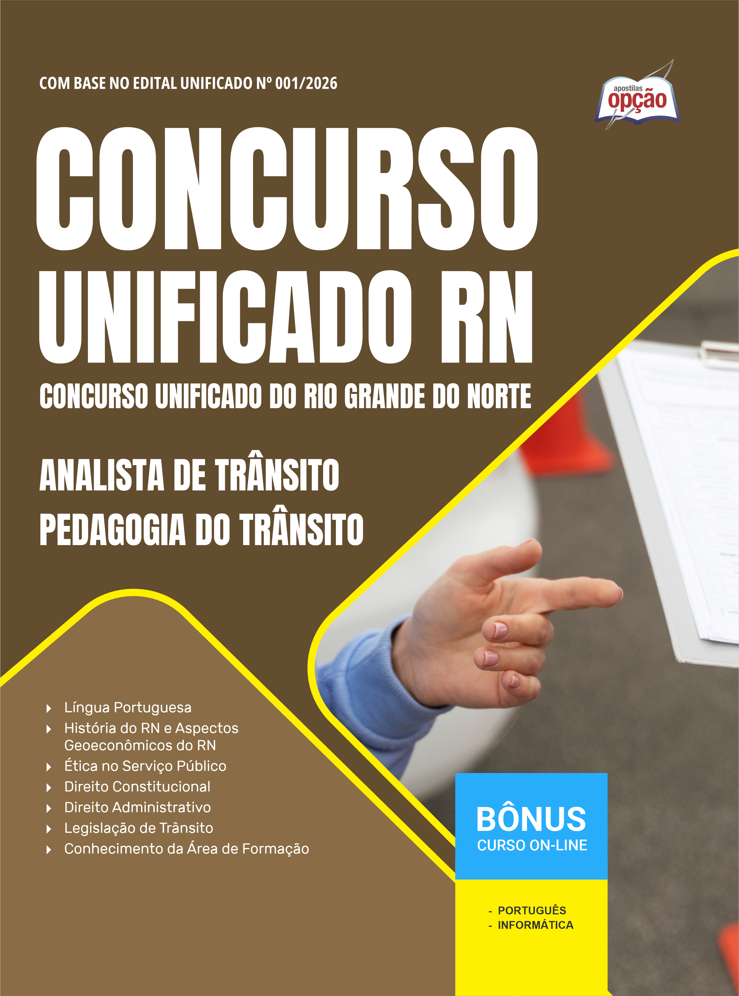 A Apostila Concurso Unificado do Rio Grande do Norte 2026 - Analista de Trânsito - Pedagogia do Trânsito foi organizada para proporcionar um melhor rendimento na sua preparação, abordando cada conteúdo de forma objetiva e direcionada. Estude para o Concurso da Concurso Unificado do Rio Grande do Norte 2026 com um material de acordo com o Edital oficial para o cargo de Analista de Trânsito - Pedagogia do Trânsito.