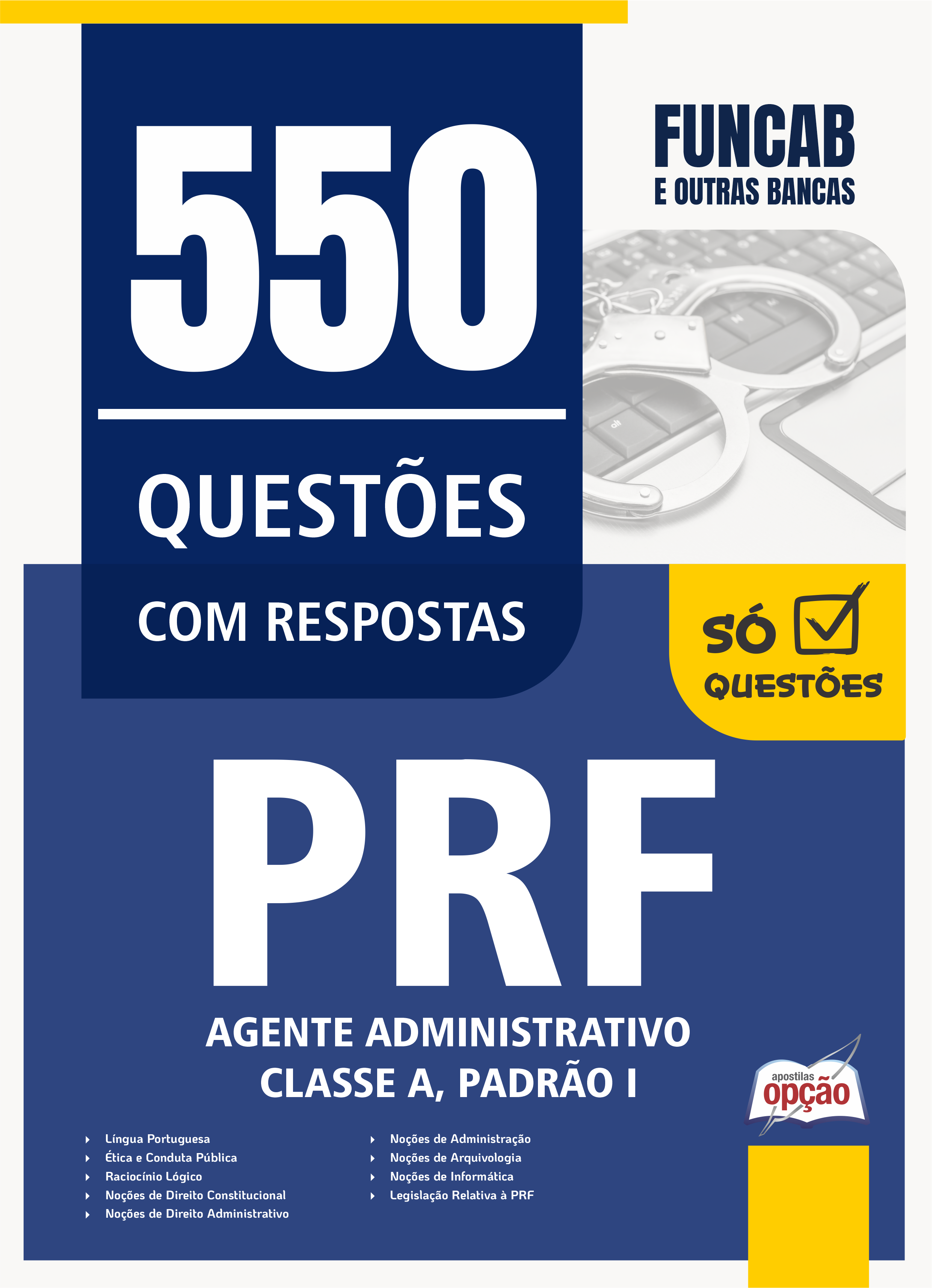 O Caderno de Questões PRF - Agente Administrativo - Classe A, Padrão I - 550 Questões Gabaritadas traz questões cuidadosamente selecionadas pela nossa equipe editorial, de acordo com o edital mais recente do concurso.