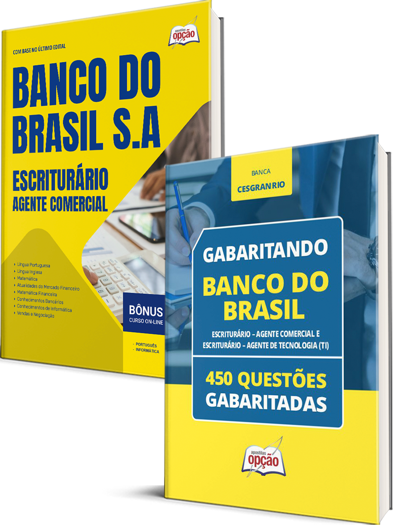O Combo Banco do Brasil 2026 - Escriturário - Agente Comercial foi elaborado pensando em 2 Bases de Estudo, onde você ECONOMIZA dinheiro e tem uma preparação mais completa.