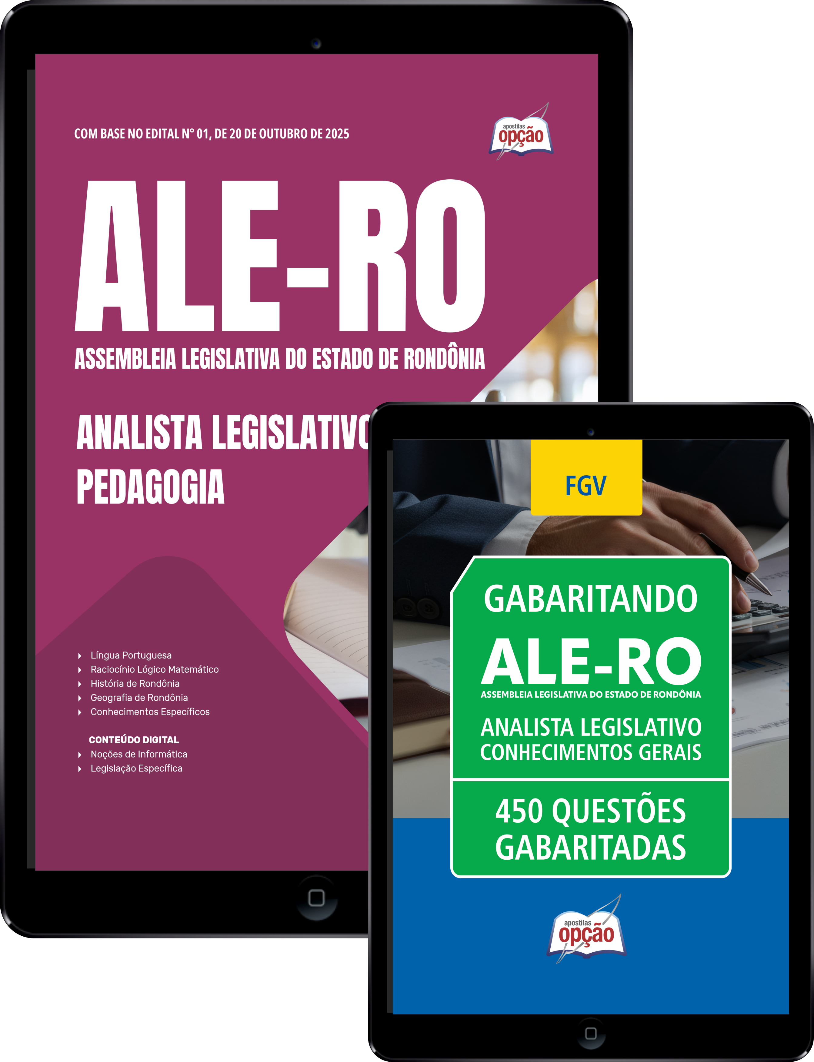 Materiais que compõem o Combo ALE-RO 2025 - Analista Legislativo - Pedagogia: