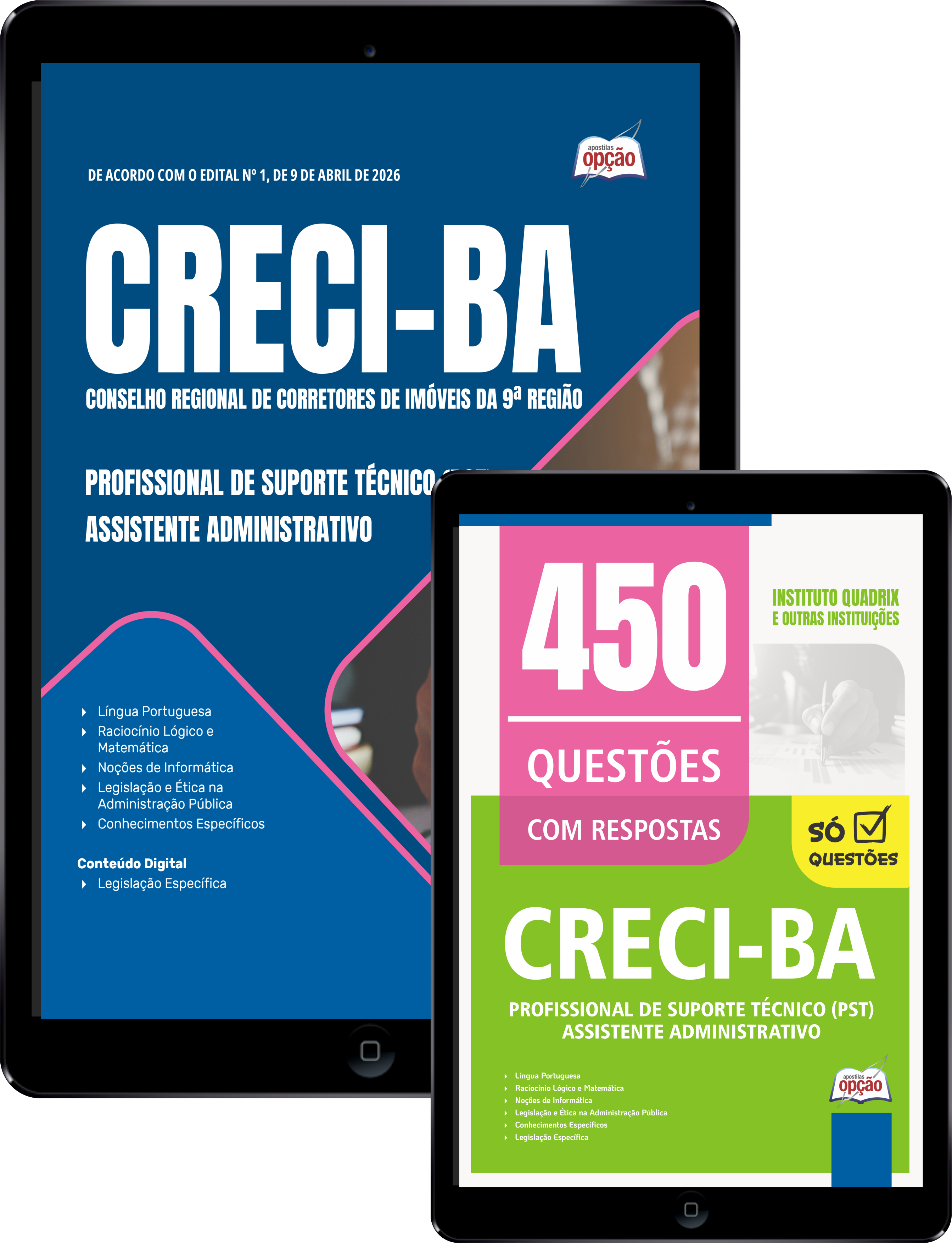 O Combo CRECI-BA 2026 - Profissional de Suporte Técnico (PST) - Assistente Administrativo foi elaborado pensando em 2 Bases de Estudo, onde você ECONOMIZA dinheiro e tem uma preparação mais completa.
