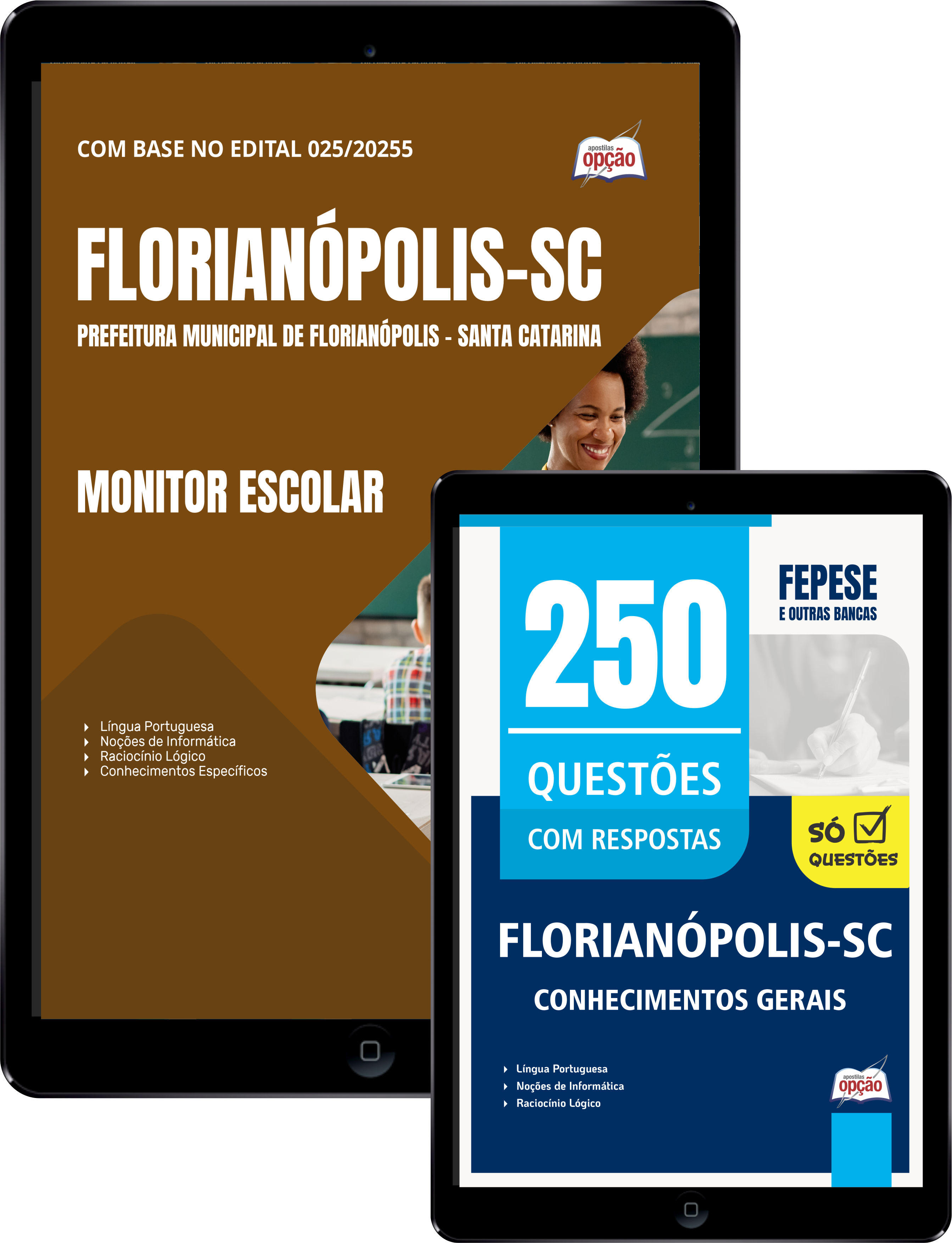 O Combo Prefeitura de Florianópolis - SC 2026 - Monitor Escolar foi elaborado pensando em 2 Bases de Estudo, onde você ECONOMIZA dinheiro e tem uma preparação mais completa.