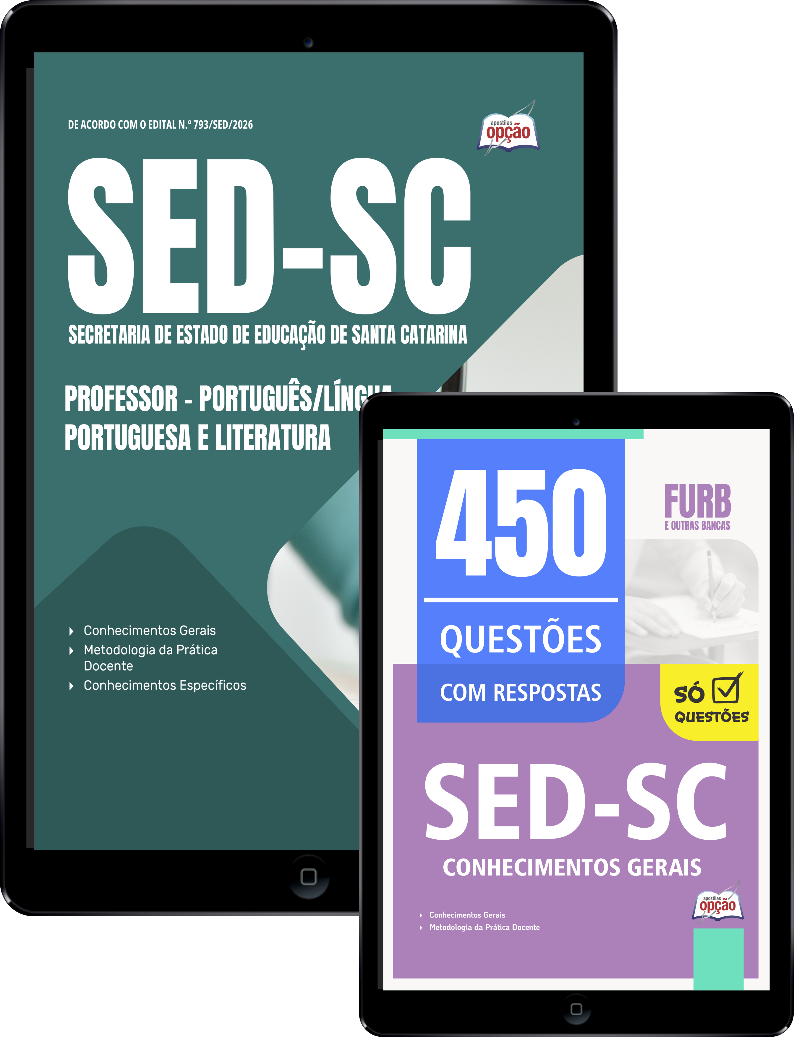Materiais que compõem o Combo SED-SC 2026 - Professor - Língua Portuguesa e Literatura: