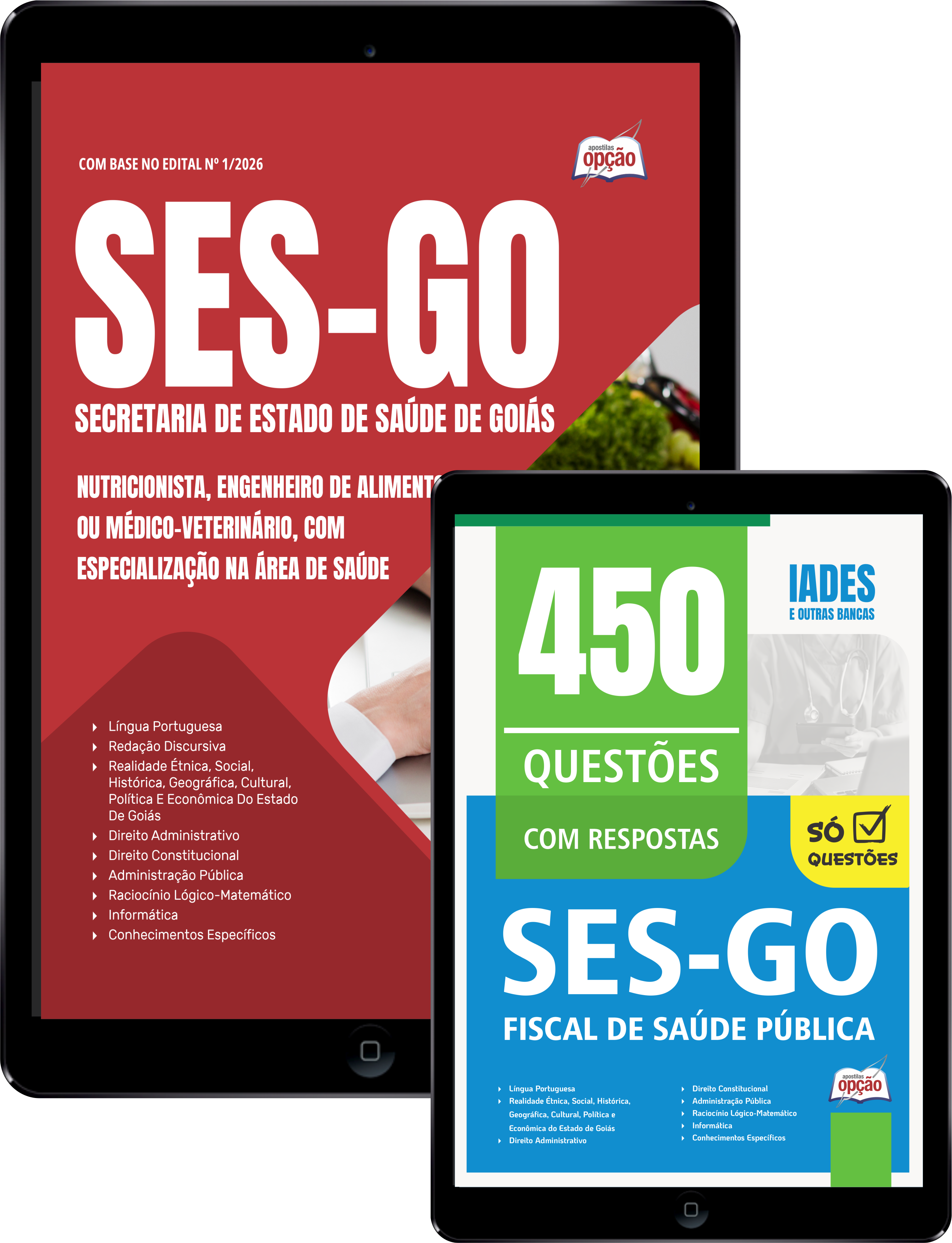 O Combo SES-GO 2026 - Categoria IV: Nutricionista, Engenheiro de Alimentos ou Médico-veterinário, com especialização na área de Saúde foi elaborado pensando em 2 Bases de Estudo, onde você ECONOMIZA dinheiro e tem uma preparação mais completa.