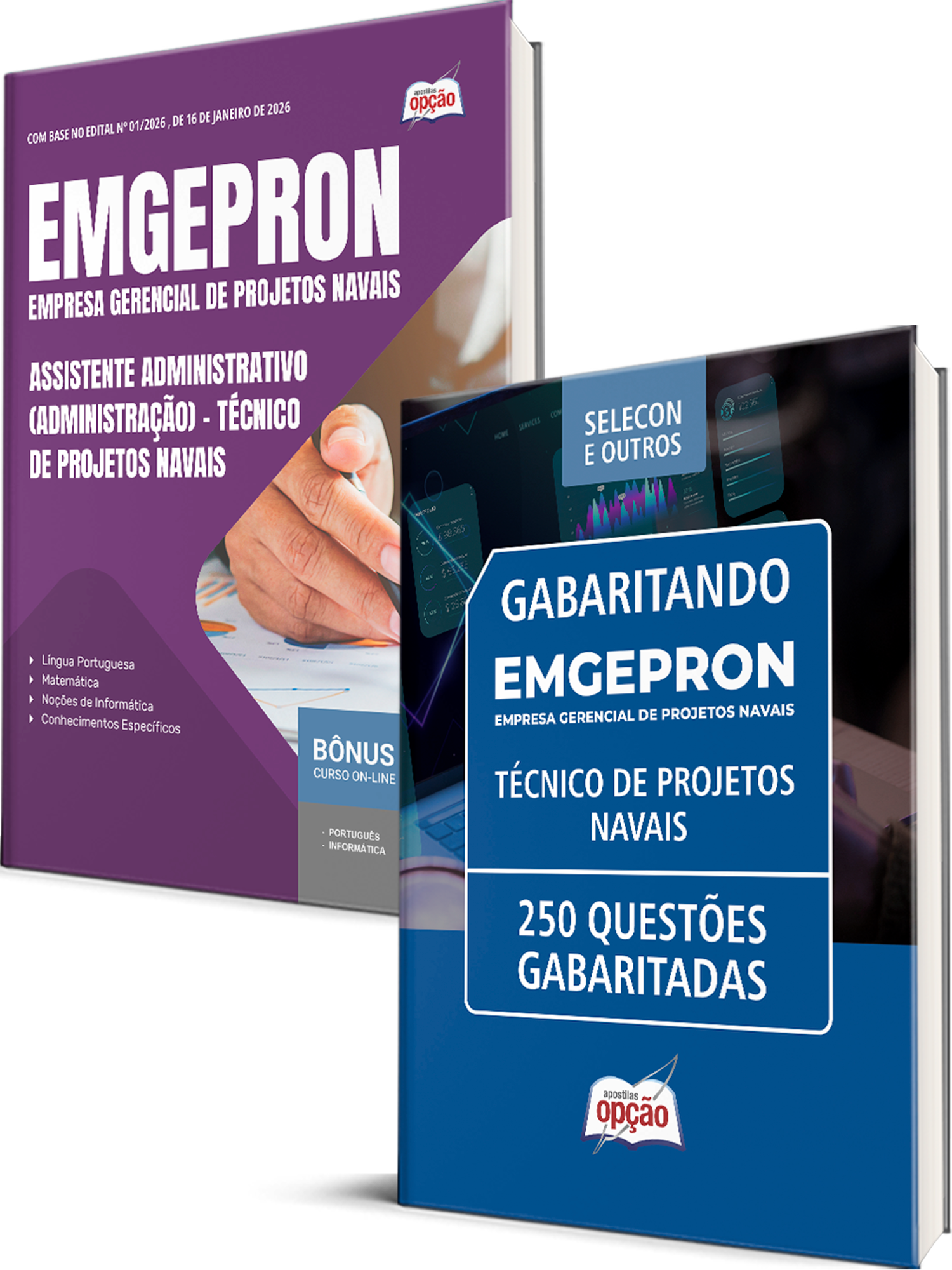 O Combo EMGEPRON 2026 - Técnico de Projetos Navais - Assistente Administrativo (Administração) foi elaborado pensando em 2 Bases de Estudo, onde você ECONOMIZA dinheiro e tem uma preparação mais completa.