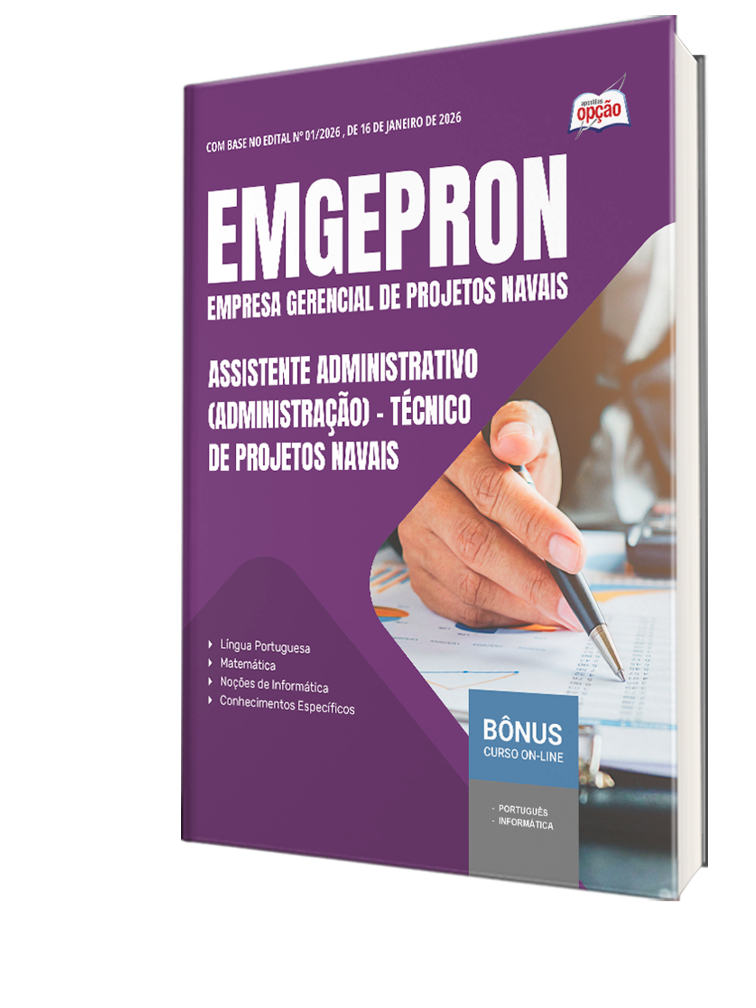 Materiais que compõem o Combo EMGEPRON 2026 - Técnico de Projetos Navais - Assistente Administrativo (Administração):