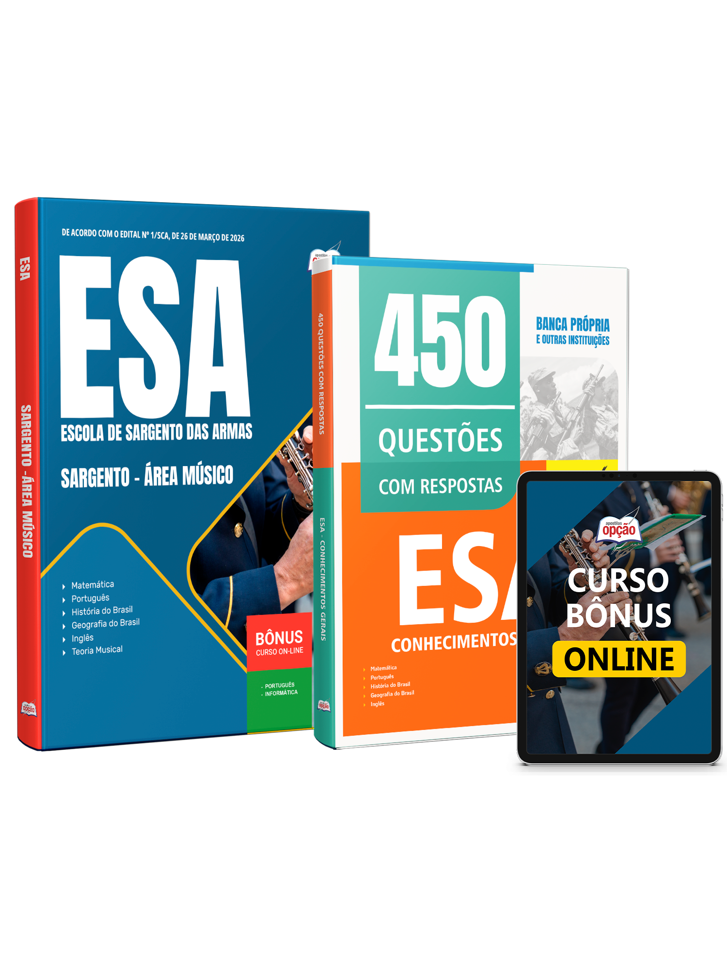 Materiais que compõem o Combo ESA 2026 - Curso de Formação de Sargento - Área: Músico: