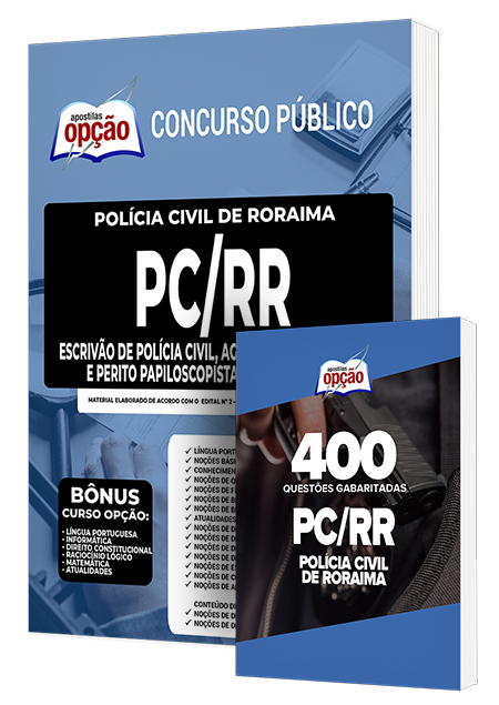 O Combo Impresso PC-RR - Escrivão, Agente e Perito Papiloscopista foi elaborado pensando em 2 Bases de Estudo, onde você ECONOMIZA dinheiro e tem uma preparação mais completa.