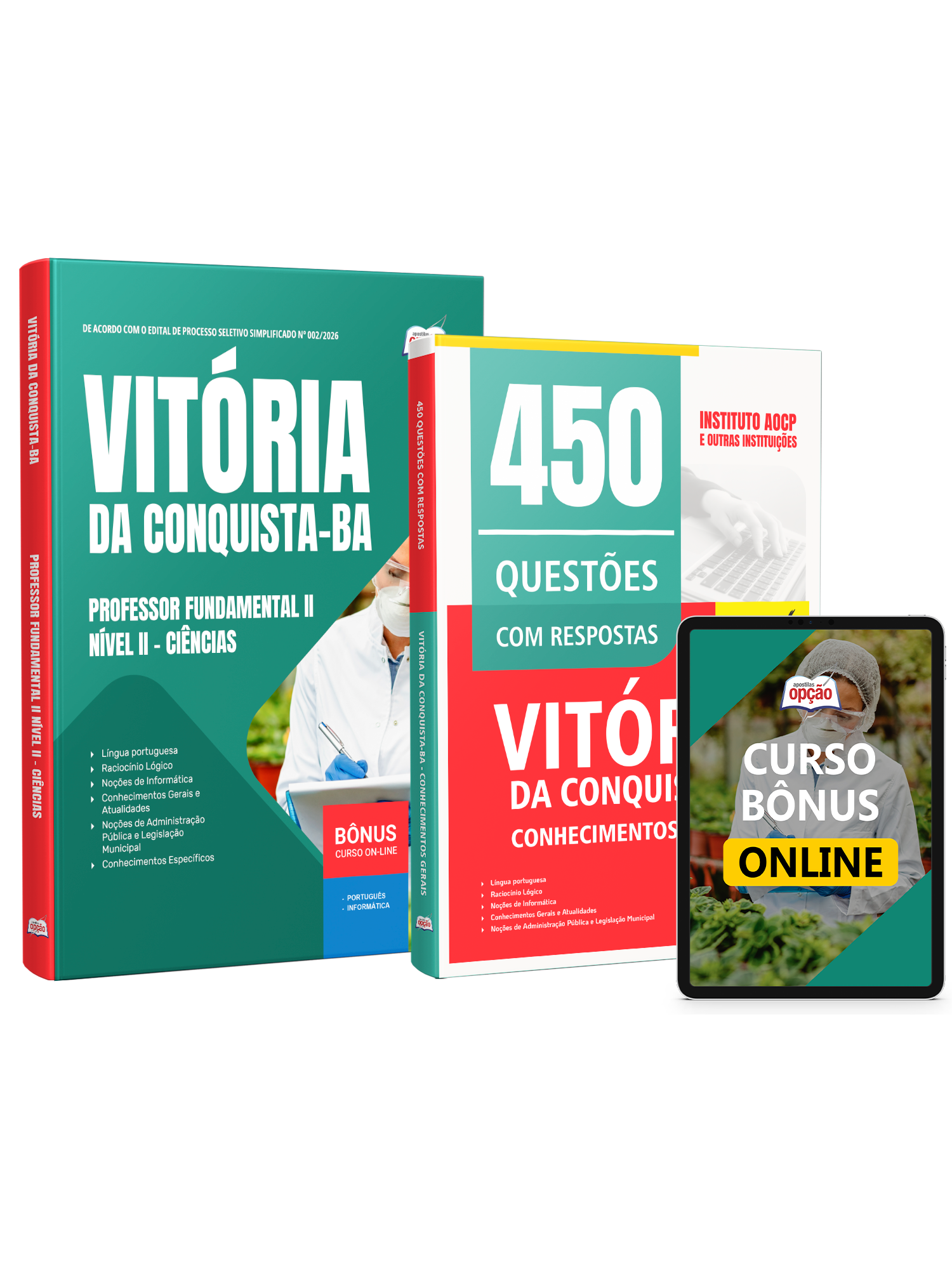 Materiais que compõem o Combo Prefeitura de Vitória da Conquista - BA 2026 - Professor Fundamental II Nível II - Ciências:
