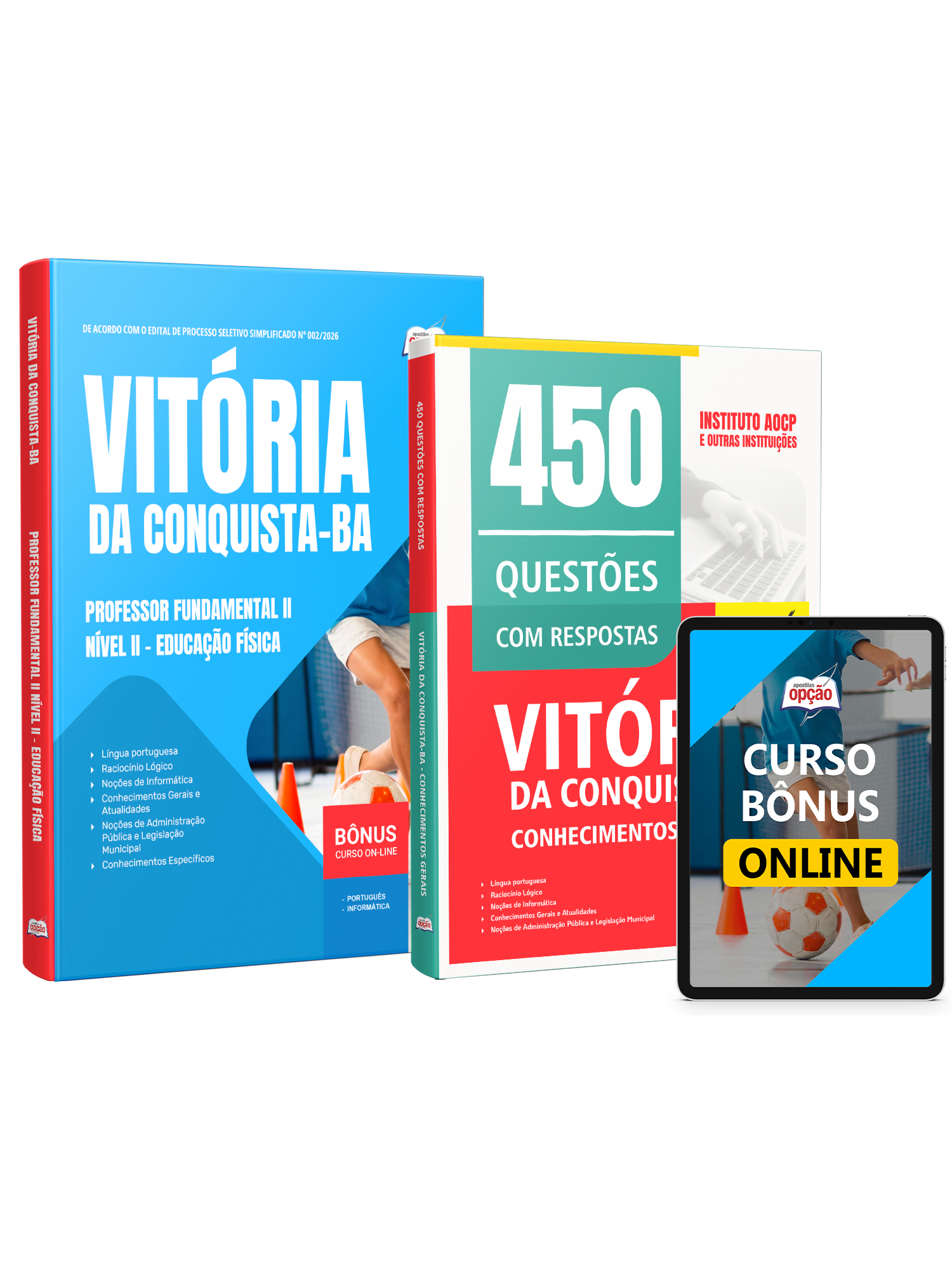 Materiais que compõem o Combo Prefeitura de Vitória da Conquista - BA 2026 - Professor Fundamental II Nível II - Educação Física: