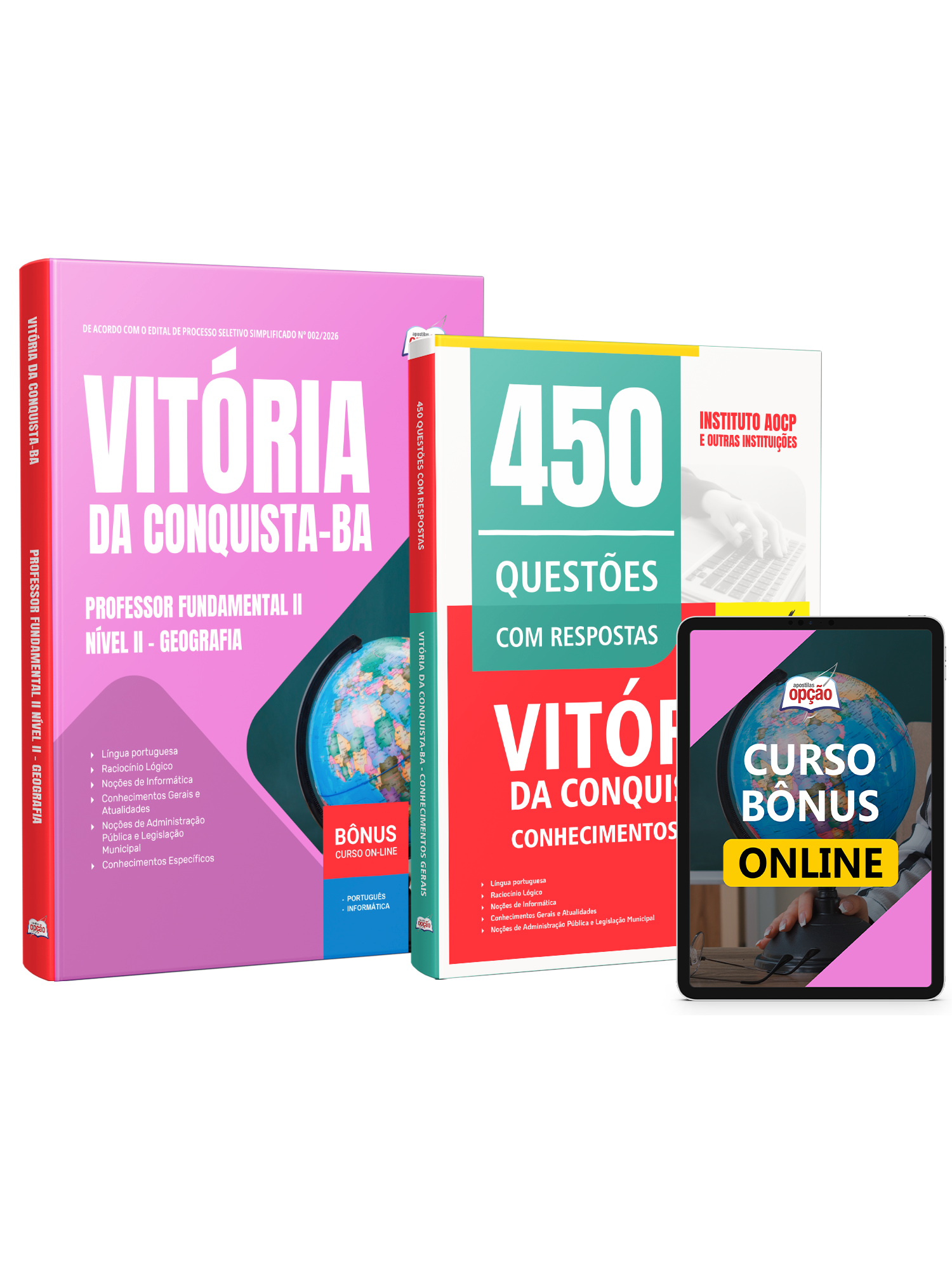 Materiais que compõem o Combo Prefeitura de Vitória da Conquista - BA 2026 - Professor Fundamental II Nível II - Geografia: