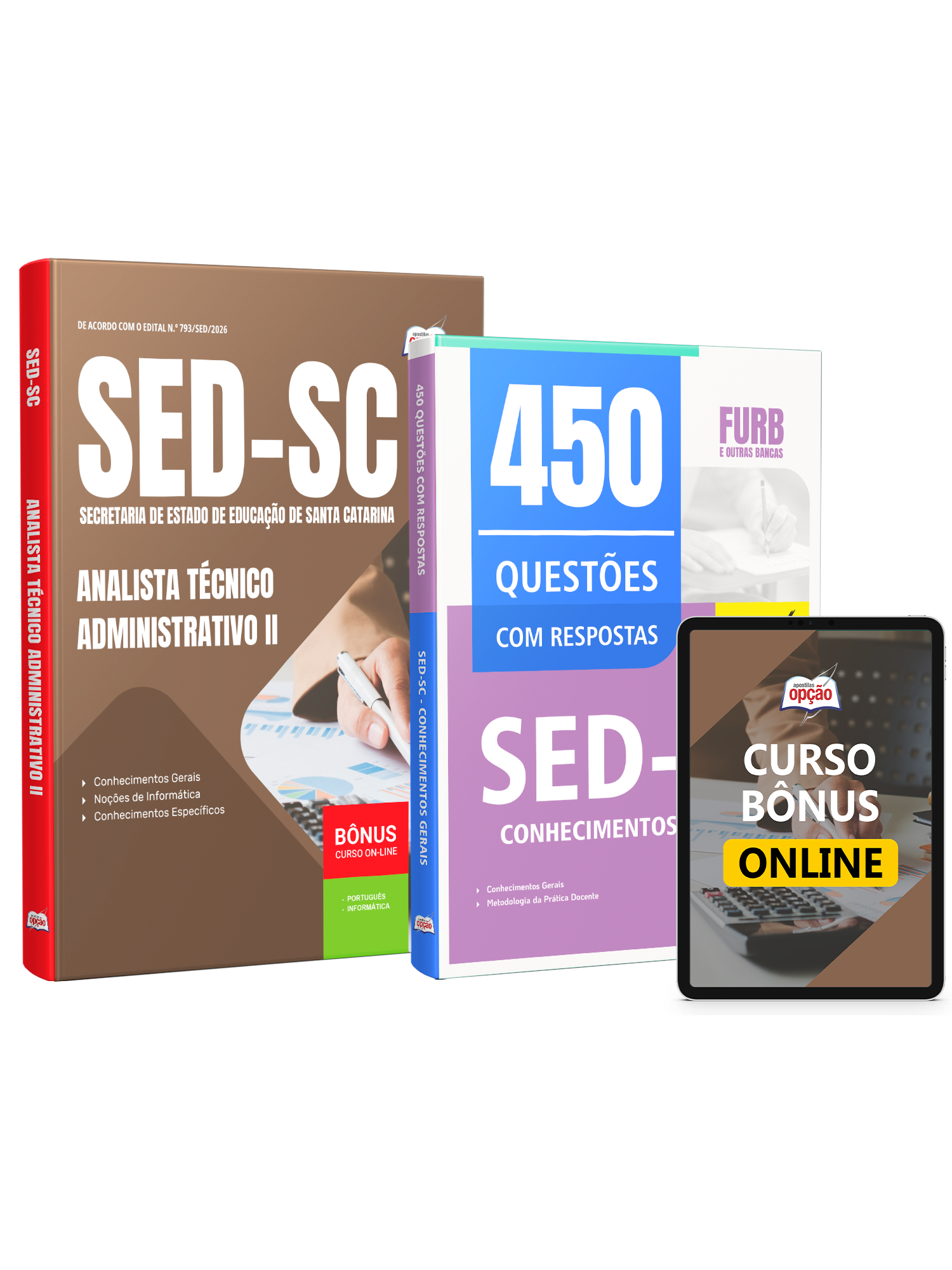 Materiais que compõem o Combo SED-SC 2026 - Analista Técnico Administrativo II: