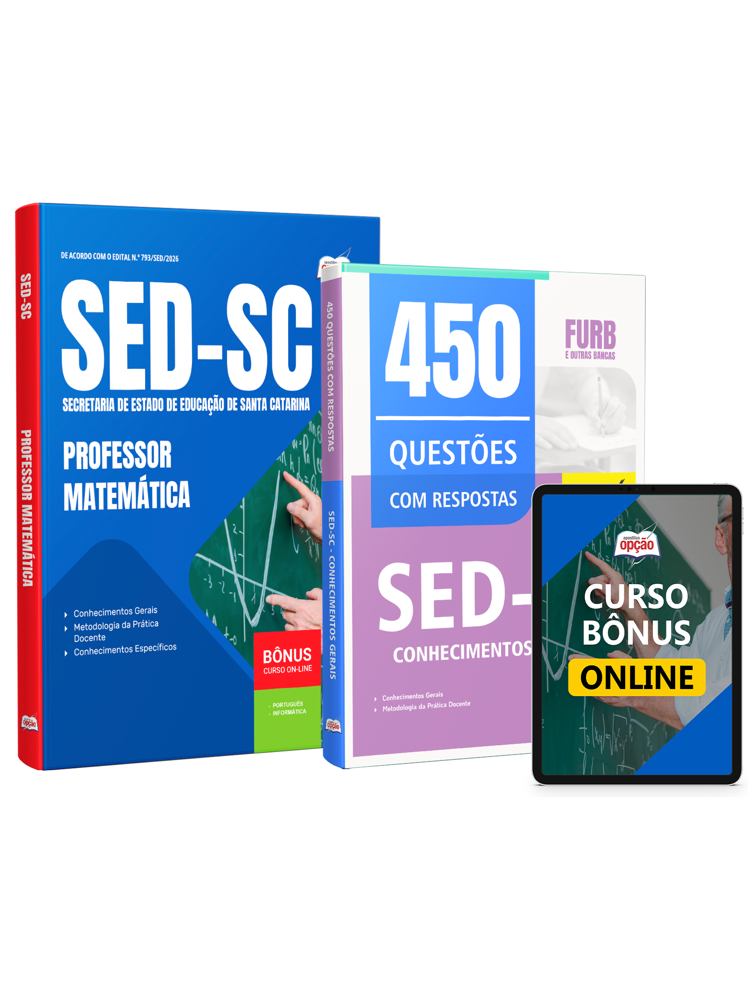 Materiais que compõem o Combo SED-SC 2026 - Professor - Matemática:
