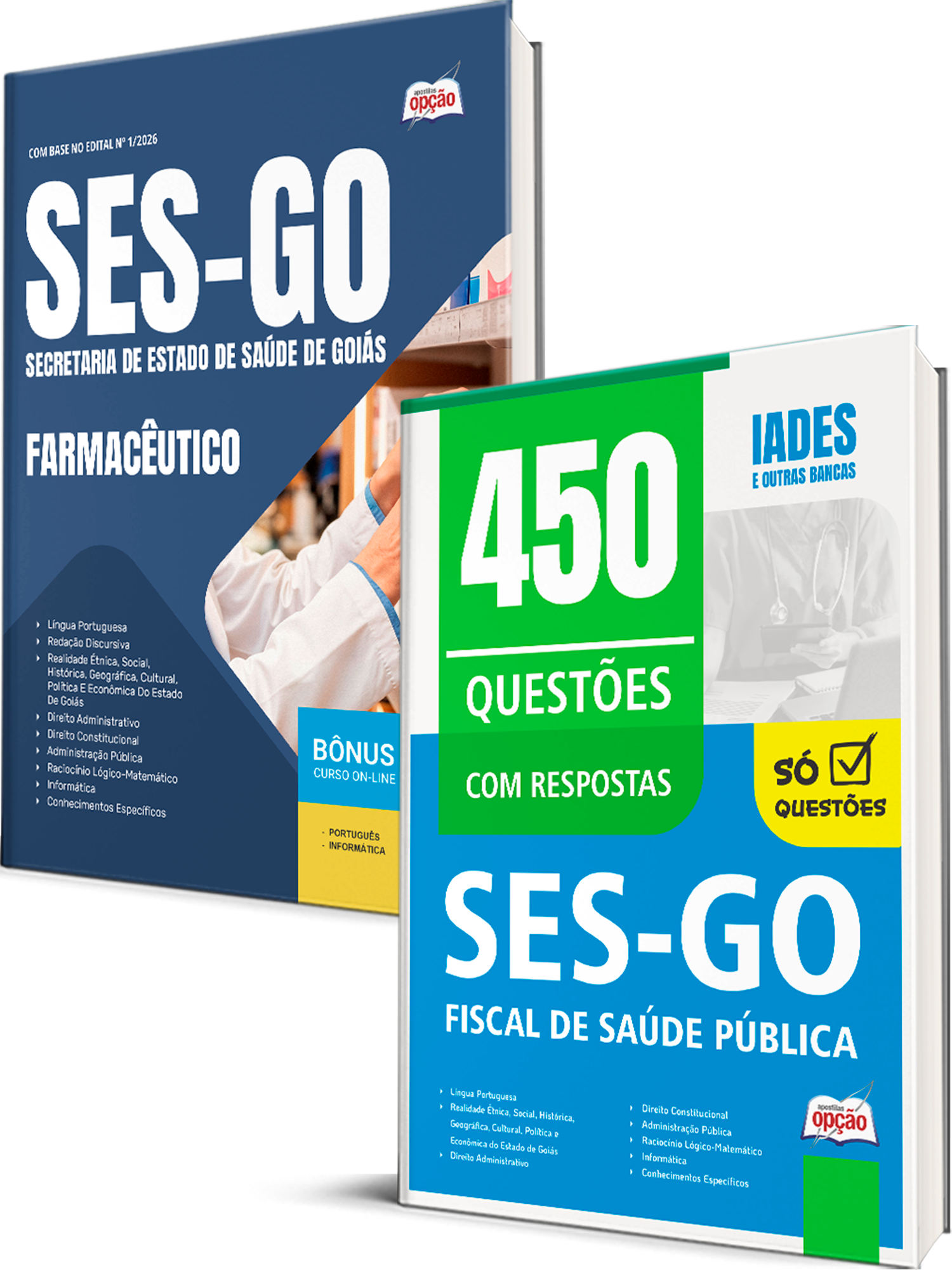 O Combo SES-GO 2026 - Categoria II: Farmacêutico foi elaborado pensando em 2 Bases de Estudo, onde você ECONOMIZA dinheiro e tem uma preparação mais completa.