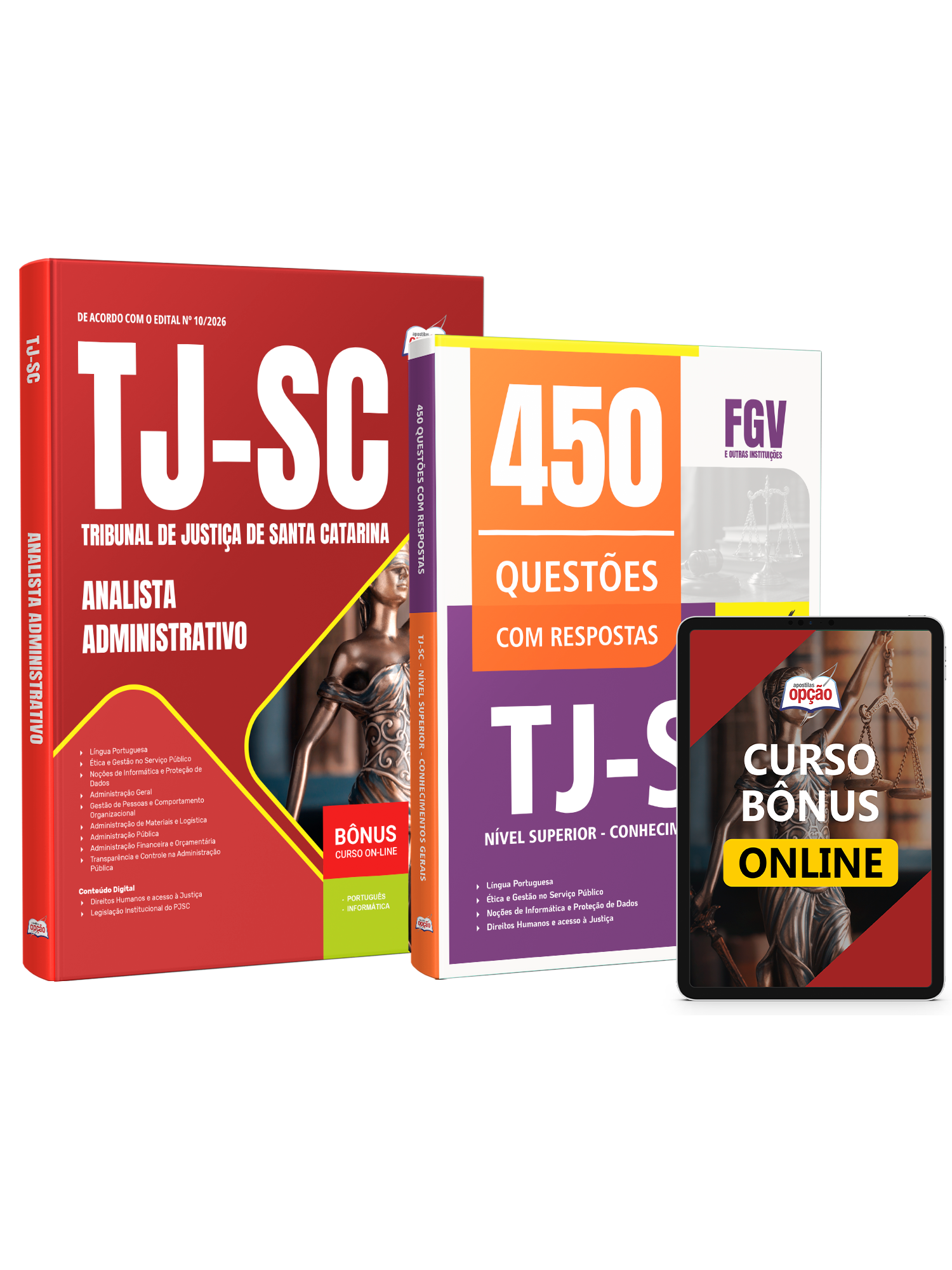 Materiais que compõem o Combo TJ-SC 2026 - Analista Administrativo: